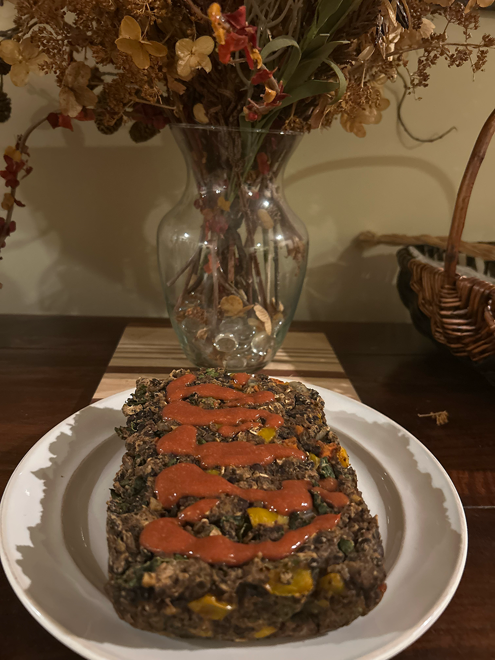 Once the lentil loaf is finished, spread the glaze over the top while the loaf is still warm or cut the loaf into servings and pour the glaze over each serving.