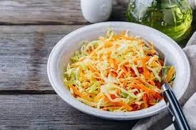 Shred the cabbage and carrots. Mince basil and cilantro.