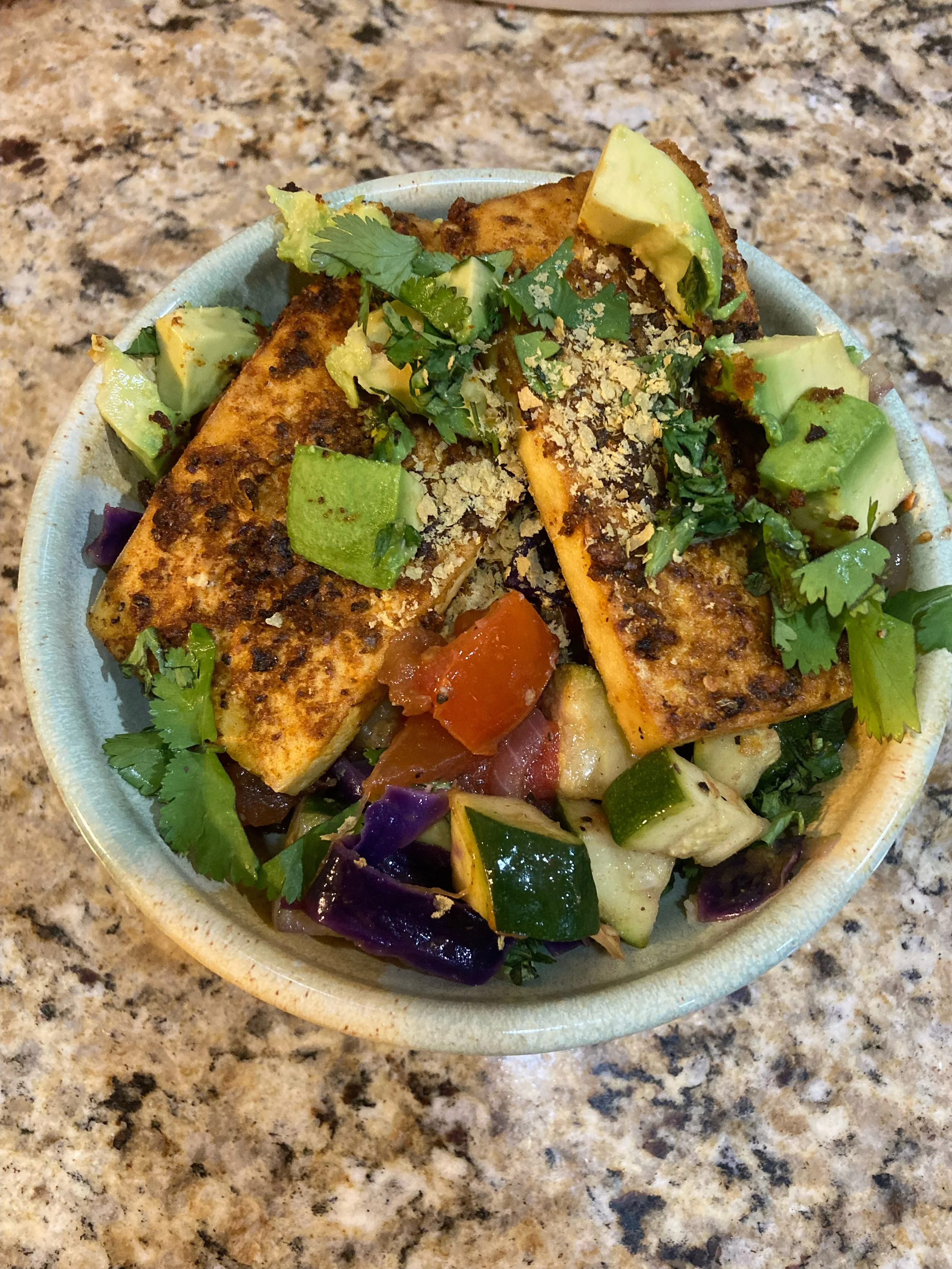 Tofu Veggie Bowl with Smokey Spicy Mexican Marinade